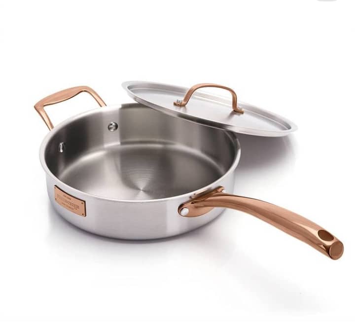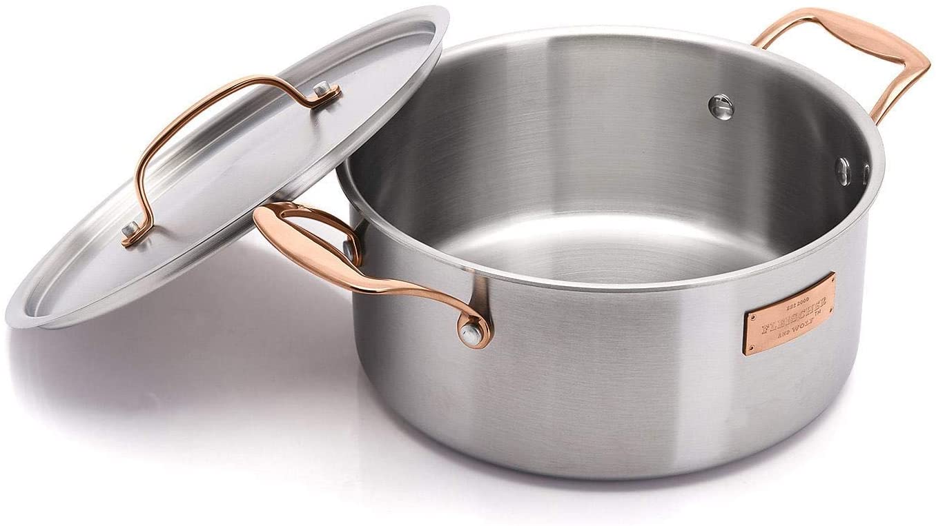 Fleischer and Wolf always love to present multi-culture spirit all around the world. Their tri-ply cookware set demonstrates London style from different aspects, elegant design, top quality and professional functionality. This 12-piece set includes cookware essentials you need for your daily cooking. Fry pans with high-quality nonstick coating make beautiful searing and browning easily. Three different size saucepans allow you to make sauce and boil vegetables for small or big amounts. Premium tri-ply provides fast even heat. You will see the amazing result when you cook with the Dutch oven for slow-simmering soups and stews. While providing outstanding cooking results, this cookware set is safe to use on all burners including induction stove. The stainless-steel surfaces are hygienic and provide easy and safe performance.