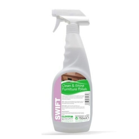 Clover Swift Clean & Shine Furniture Polish is ready-to-use clean and shine furniture polish, which cleans and polishes in one application. . An emulsion of cleaning agents and silicones in an aqueous base, Swift leaves a fine finish and freshens the environment with a sophisticated fragrance. . Designed for cleaning and polishing modern furniture and fittings, including glass surfaces. . Ideal for use in hotels, offices, nursing homes and public buildings, Swift is the product of choice for professional cleaners.